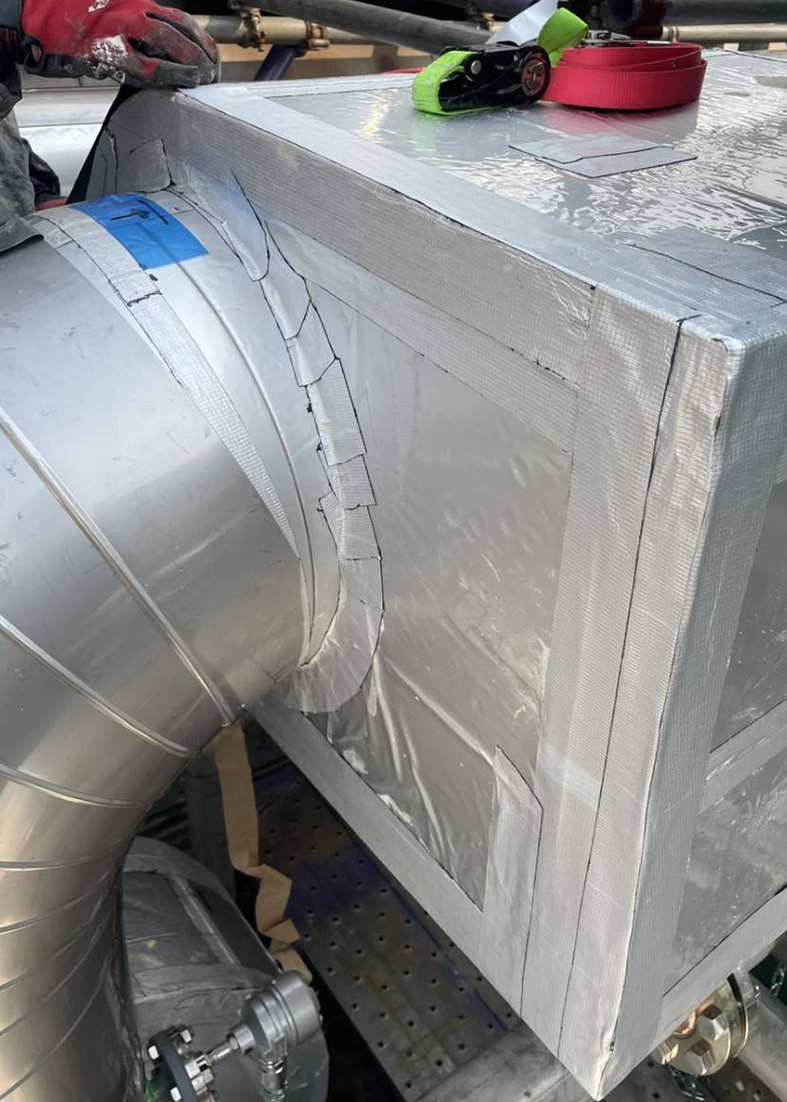 仕上げとして、保温・板金施工を丁寧に整え、コーキングで隙間を埋めるなど、長期的に安全・安心な状態を保つための工程です。