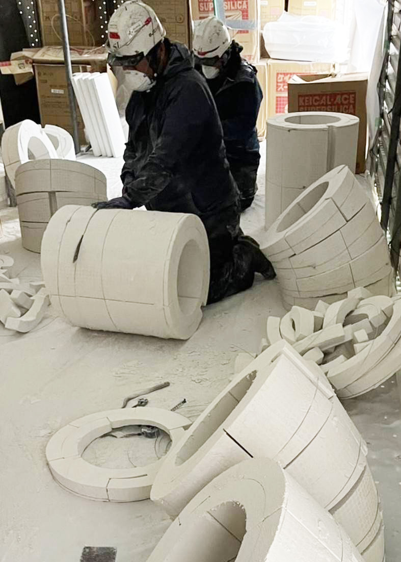 SJエンジニアでは、主にプラント設備の保温工事・断熱工事・板金工事を行っています。